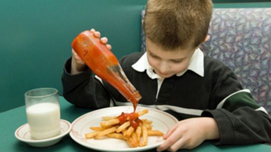 It is a blue label sugar reduced ketchup that is very good. From online research it appears tomatoes provide a lot of vitamins and minerals that our bodies need. The sugar triggers pleasure centers in the brain that causes children to crave ketchup.