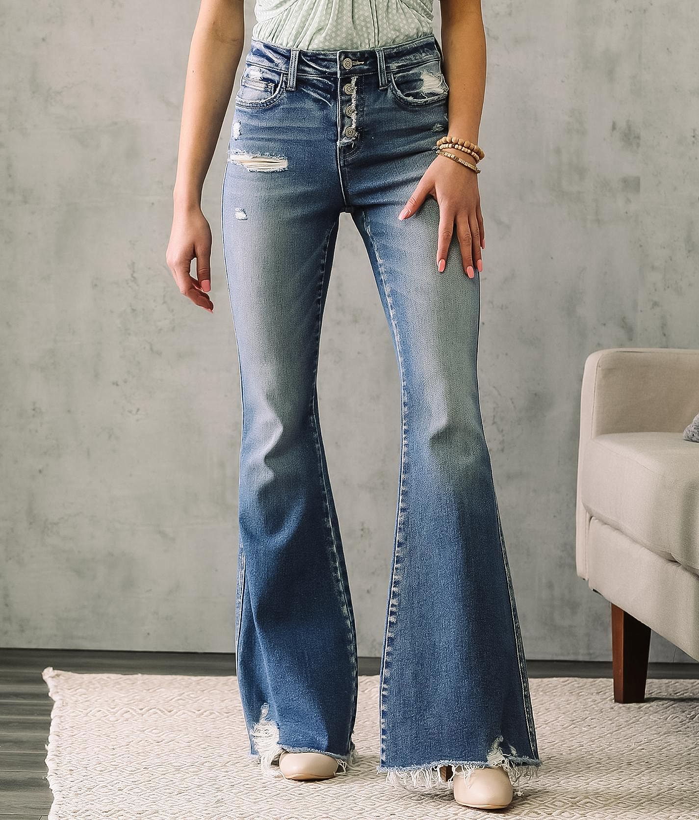 Featuring a light washed denim with subtle fading and distressing on the front and back giving this timeless bell-bottom style an edge. Flying Monkey High Rise Flare Stretch Jean is rated 48 out of 5 by 31. Flying Monkey was launched in 2004 by Plastic by GLY which is known for its unique individual contemporary styles. Run dont walk for the Flying Monkey Mid-Rise Flare Stretch Jean from Flying Monkey. Select a store to view pickup options. Distressed Double Cuffed Stretch MOM Jean Medium Blue. Get Flying Monkey Jeans with fast and free shipping.
