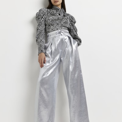 Metallic wide leg pants. The Selma Metallic Wide Leg Pant is unavailable but why not try. This silver metallic shade takes these pants to another level. Caroline is 176 cm tall and wears a size 38.